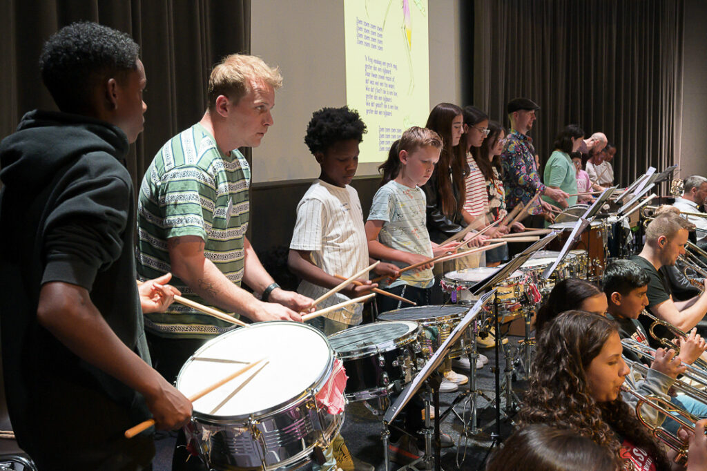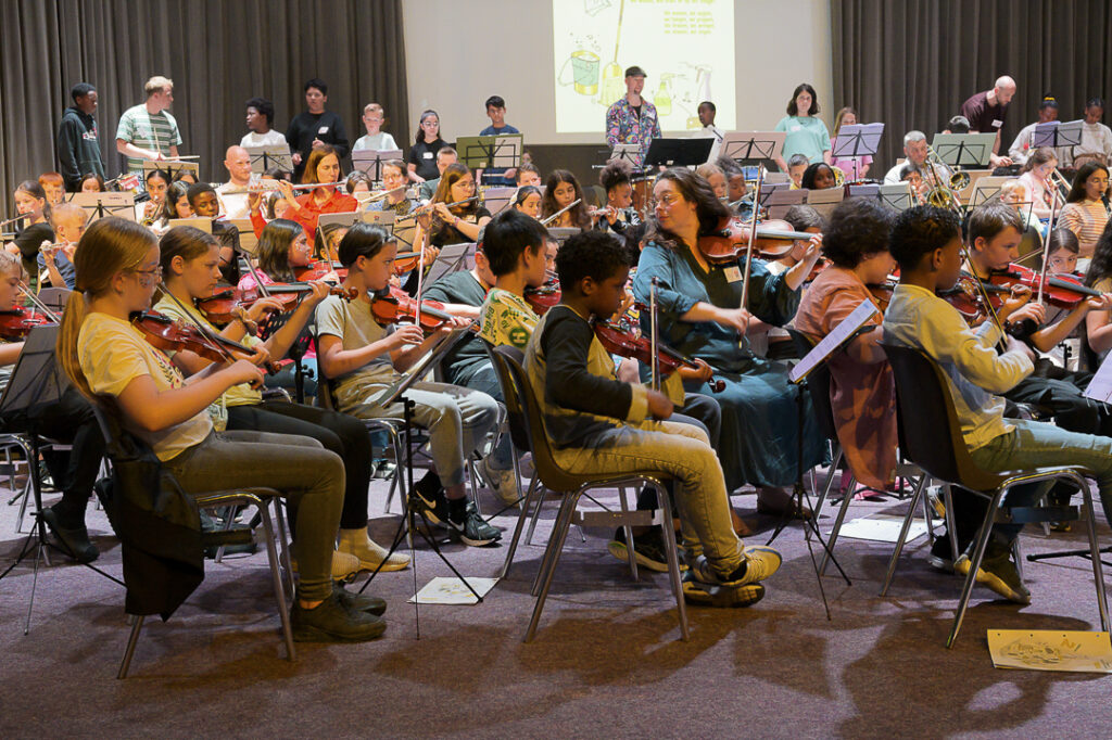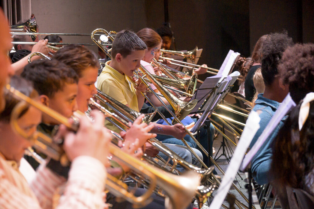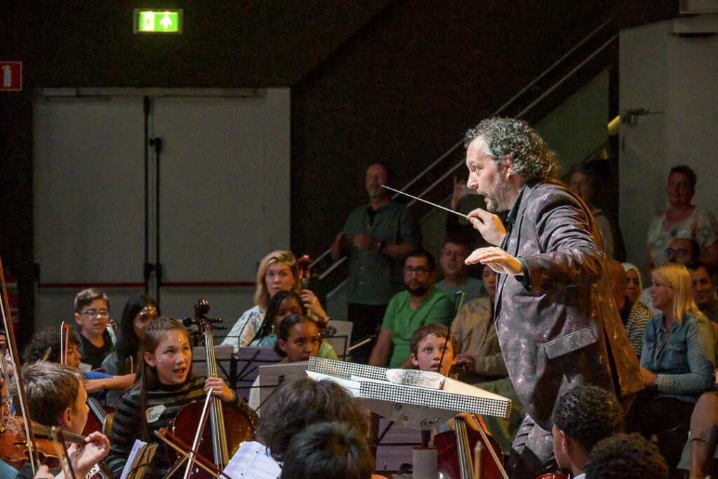 Een droom komt uit: een uitvoering van vijf basisscholen uit Dordrecht. In een echt theater, met spotlights, glitters en… Muziek! Het is kennelijk geen probleem dat kinderen niet eerder met elkaar gespeeld hebben. Dankzij de solide les van de muziekdocenten weten de kinderen precies wat te doen. Fotografie: Photocase