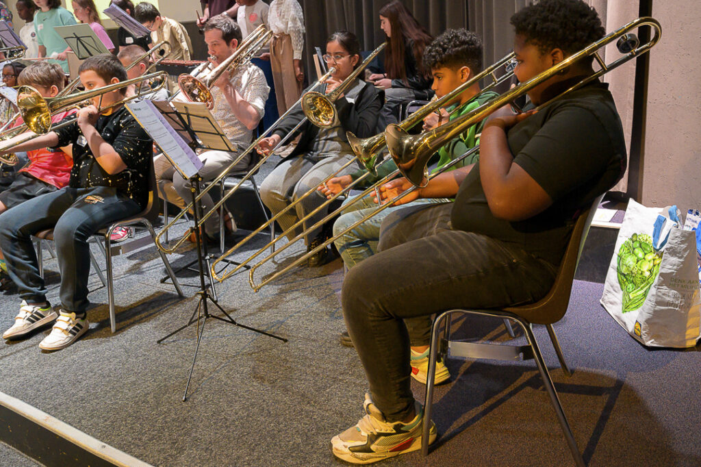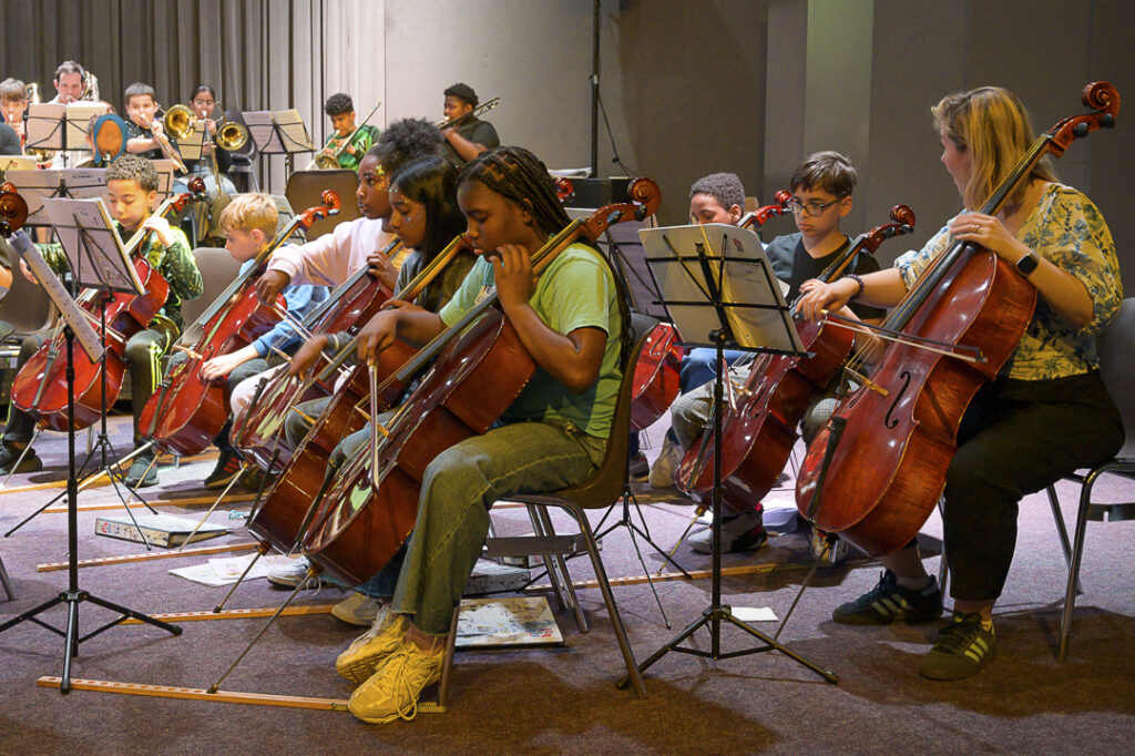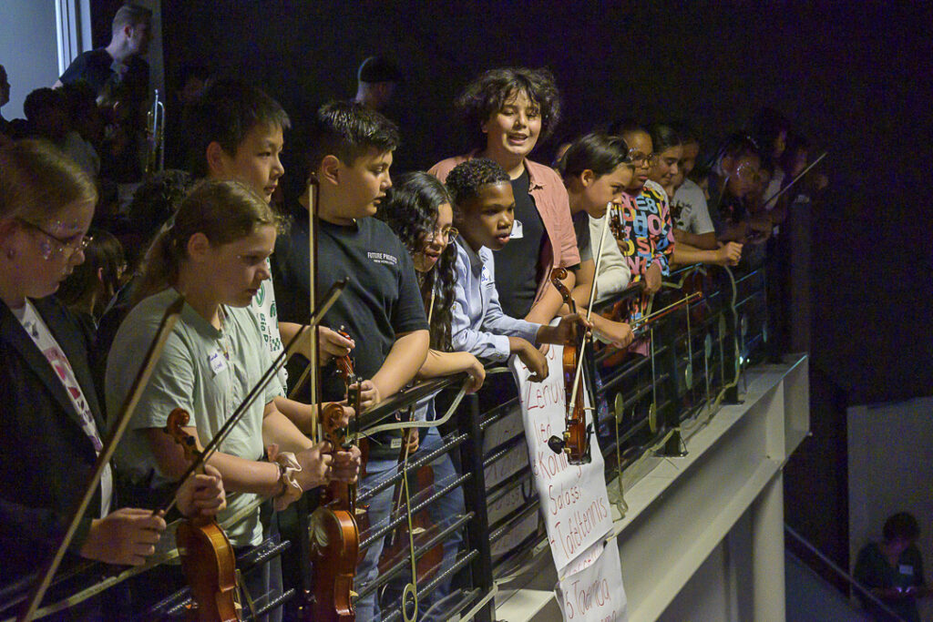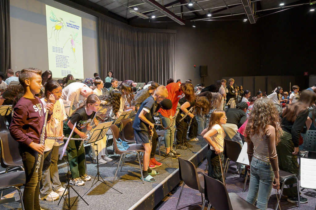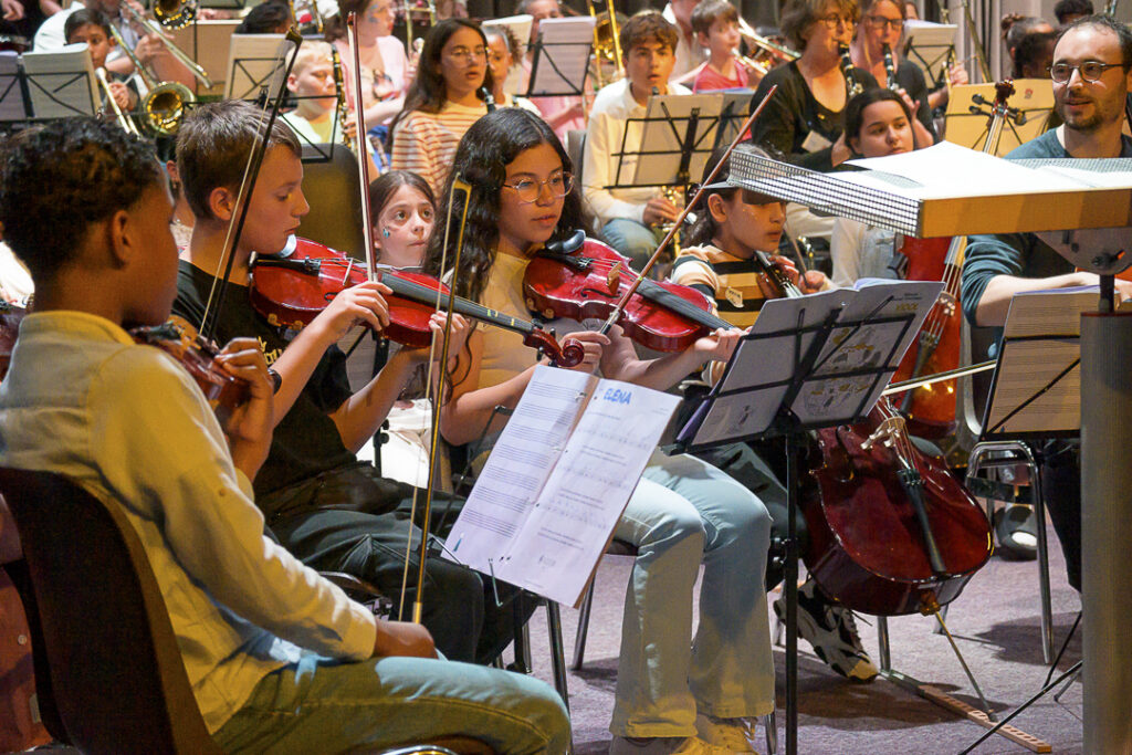 Een droom komt uit: een uitvoering van vijf basisscholen uit Dordrecht. In een echt theater, met spotlights, glitters en… Muziek! Het is kennelijk geen probleem dat kinderen niet eerder met elkaar gespeeld hebben. Dankzij de solide les van de muziekdocenten weten de kinderen precies wat te doen. Fotografie: Photocase